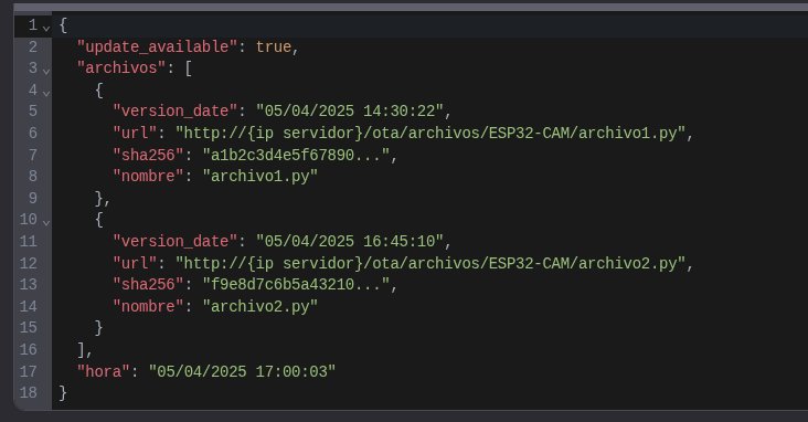 El archivo ota.py es el programa principal de este sistema cuyas funciones son verificar, descargar, validar e instalar actualizaciones de archivos desde el servidor remoto, manteniendo sincronizada la versión del software del dispositivo y es llamado desde boot,py luego de establecida la conexion con la red wifi.