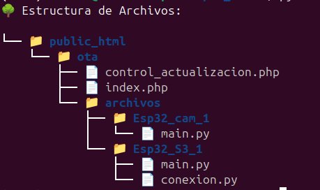 El archivo index.php implementa un panel de administración web para el sistema OTA (Over-The-Air), esta diseñado para gestionar la subida, registro y seguimiento de archivos del destinados a dispositivos remotos Esp32. Permite a los administradores subir nuevas versiones de archivos, organizados por modelo de dispositivo, y monitorear el estado de actualizacion los equipos que se han conectado al servidor